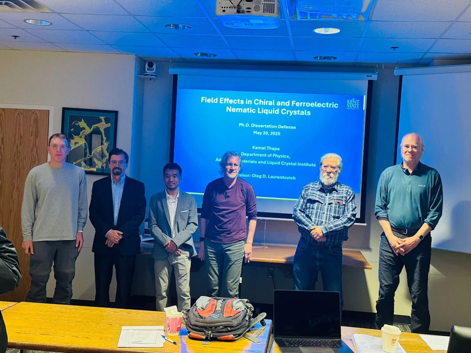 Kamal Thapa successfully defended his Ph.D. dissertation on "Field effects in chiral and ferroelectric nematic liquid crystals". Congratulations Dr. Thapa! May 20, 2025
