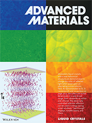 The demonstration of electrically tunable color of heliconical cholesteric structures by Jie Xiang et al highlighted by a frontispiece in Advanced Materials. |