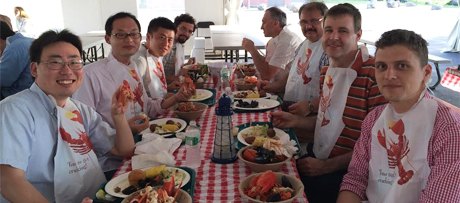 ![]() Members of Dr.Oleg Lavrentovich's group enjoying a traditional lobster dinner at the Gordon Research Conference held in the University of New England, Biddeford, Maine.
