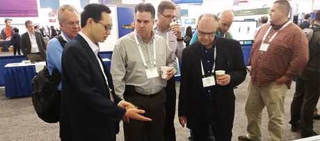 ![]() Jie Xiang is demonstrating the full color reflective display prototype based on the cholesteric heliconical structure in the Innovation Zone, Display week, San Jose. The demo attracted several companies which would like to invest on this technology.
